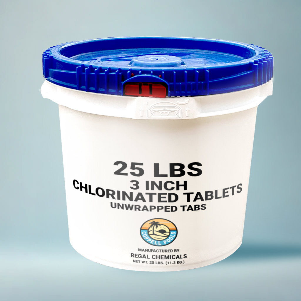 Maintain a sparkling and sanitized pool with our 25 lb Pail of 3" Chlorinated Tabs. These powerful chlorine tablets are designed to provide consistent and effective sanitation, ensuring that your pool water remains clear, safe, and free from harmful bacteria and algae. Ideal for routine maintenance, these unwrapped tabs dissolve slowly and evenly, providing a steady release of chlorine.